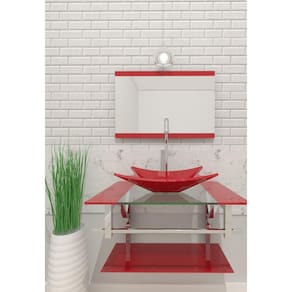 Espessuras: - Bancada de Vidro: 8 mm - Cuba de Vidro: 10 mm - Prateleira Bancada: 6 mm - Espelheira: 3 mm