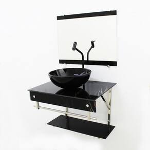 Gabinete de vidro 60cm iqx inox com cuba redonda - mármore preto Os nossos gabinetes são indicados para projetos arrojados e de muito bom gosto, além de valorizar o seu ambiente com sofisticação em uma decoração de alto padrão, ele consegue usufruir das vantagens que o vidro proporciona e gerar uma durabilidade indiscutível. Utilizamos impressão em alta definição, garantindo com que as cores impressas não se deformem com o passar dos anos. Dados técnicos Itens inclusos: - bancada de vidro com furo para torneira e válvula click; - cuba de vidro; - espelheira espelho ; - estrutura e porta toalha de inox; - kit parafusos completo para instalação; - prateleira de vidro da bancada; - porta toalha: 60cm largura ; - testeira de vidro; - válvula click. Dimensões: - bancada de vidro: 60 x 45cm largura x profundidade ; - cuba de vidro: 35cm diâmetro ; - prateleira da bancada: 60 x 25cm largura x profundidade ; - espelheira espelho : 60 x 45cm largura x altura ; - testeira de vidro: 60 x 7cm largura x altura ; - válvula click: 1 1/4 Espessuras: - bancada de vidro: 8mm; - cuba de vidro: 12mm; - espelheira espelho : 3mm; - prateleira da bancada: 6mm; - testeira de vidro: 6mm; : 12 meses conforme política de troca e devoluções . Atenção: preço referente somente ao gabinete, não acompanha torneira, sifão e acessórios. Montagem: montagem e instalação não inclusa na venda ou preço do produto, elas são de inteira responsabilidade do cliente. Imagens ilustrativas. Marca: Não Informado