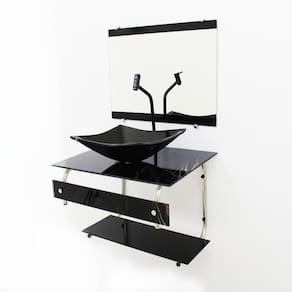 Gabinete de vidro 60cm it inox com cuba retangular - mármore preto Os nossos gabinetes são indicados para projetos arrojados e de muito bom gosto, além de valorizar o seu ambiente com sofisticação em uma decoração de alto padrão, ele consegue usufruir das vantagens que o vidro proporciona e gerar uma durabilidade indiscutível. Utilizamos impressão em alta definição, garantindo com que as cores impressas não se deformem com o passar dos anos. Dados técnicos Itens inclusos: - bancada de vidro com furo para torneira e válvula click; - cuba de vidro; - espelheira espelho ; - estrutura de inox tubular; - kit parafusos completo para instalação; - prateleira de vidro da bancada; - testeira de vidro; - válvula click. Dimensões: - bancada de vidro: 60 x 45cm largura x profundidade ; - cuba de vidro: 39x32cm largura x comprimento ; - prateleira da bancada: 60 x 25cm largura x profundidade ; - espelheira espelho : 60 x 45cm largura x altura ; - testeira de vidro: 60 x 7cm largura x altura ; - válvula click: 1 1/4. Espessuras: - bancada de vidro: 8mm; - cuba de vidro: 10mm; - espelheira espelho : 3mm; - prateleira da bancada: 6mm; - testeira de vidro: 6mm. : 12 meses conforme política de troca e devoluções . Atenção: preço referente somente ao gabinete, não acompanha torneira, sifão e acessórios. Montagem: montagem e instalação não inclusa na venda ou preço do produto, elas são de inteira responsabilidade do cliente. Imagens ilustrativas. Ean: 7908240669359