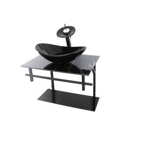 dados técnicos itens inclusos: - bancada de vidro temperado com furo para instalação da torneira 3,5cm diâmetro e da válvula click 4,5cm diâmetro - cuba de vidro oval - suporte preto, resistente a umidade extrema e não enferruja - kit parafusos completo para instalação - prateleira de vidro - válvula click.