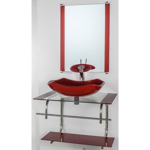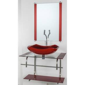 Gabinete De Vidro Banheiro Inox 70Cm Cuba Abaulada Vermelho