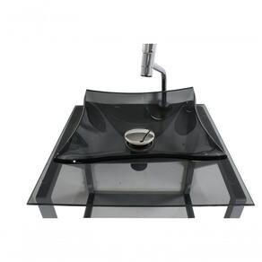 - Bancada de vidro com furo para instalação da torneira (3,5cm diâmetro) e da válvula click (4,5cm diâmetro)
