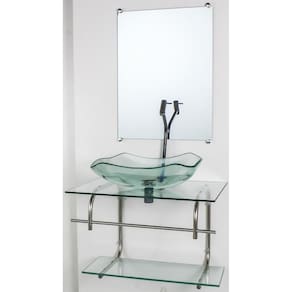 Gabinete De Vidro P/Banheiro Inox 70Cm Cuba Abaulada Incolor