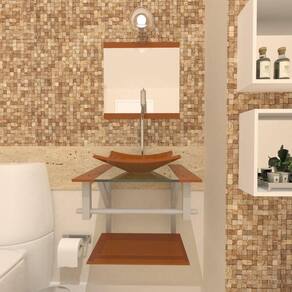 - Bancada de vidro com furo para instalação da torneira (3,5cm diâmetro) e da válvula click (4,5cm diâmetro)