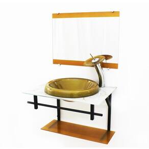 espessuras: - bancada de vidro: 8mm; - cuba de vidro: 12mm; - espelho: 3mm; - prateleira da bancada: 6mm;