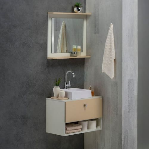 Transforme seu banheiro no seu cantinho preferido com o Meu Canto Modelo 3. O design suspenso do balcão (40cm altura x 60cm largura x 32cm profundidade) e da espelheira (50cm altura x 60cm largura x 8cm profundidade) traz leveza e um charme todo especial. É a escolha certa para quem quer um ambiente com toque pessoal, simples e super aconchegante. Acabamento da Cuba: Alto Brilho Acabamento da Porta: BP Acabamento da Prateleira: BP Acompanha Cuba: Sim Acompanha Manual de Instalação: Não Acompanha Parafusos Para Fixação Na Parede: Sim Acompanha Válvula: Não Ambiente Principal: Banheiro codigo_ean: 7900288251466 Comprimento da Prateleira: 60 cm Cor: Creme/Branco Cor da Cuba: Branco Cor do Produto: Creme/Branco Escala de Brilho: Acetinado Escala de Brilho da Porta: Semi-Fosco Escala de Brilho da Prateleira: Semi-Fosco Espessura da Prateleira: 1,5 cm Formato da Cuba: Quadrado Furação para Cuba e Torneira: Não Itens Inclusos: 1 Gabinete, 1 Espelheira e 1 Cuba Linha ou Coleção: Meu Canto Manual de Especificação Técnica: https://product-hub-prd.madeiramadeira.com.br/934696766/documents/913b0c8b-d56a-4843-bcce-6def4305cd233250339666417592514121635.pdf Manual de Montagem e Instalação: https://product-hub-prd.madeiramadeira.com.br/934696766/documents/cce601eb-cbbd-499e-ba9b-00831a2d80d6874095e1cd6764ad1758571396.pdf Marca: Eco Móveis Material da Cuba: Mármore Sintético Material da Porta: MDP Material da Prateleira: MDP Material do Puxador da Porta: Plástico Material do Tampo: MDP Material Principal: MDP Medida da Cuba (C x L x P): 9 x 32 x 30 Necessita Montagem: Não Origem do Produto: Nacional Peso: 17,7 kg Peso Máximo por Prateleira: 30 kg Possui Espelhos: Sim Possui Nichos: Não Possui Pés: Suspenso Possui Portas: Sim Possui Prateleiras: Sim Possui Recorte No Tampo Para Cuba: Não Possui Recorte No Tampo Para Misturador: Não Possui Sifão: Não Possui Tampo: Sim Produto Montado: Não Recomendações de Uso, Manutenção e Limpeza: Limpar com pano úmido ou com alcool Resistente à Chuva: Não Sapatas Niveladoras: Não Suporta Até (kg): 50 kg Tipo de Cuba: Apoio Tipo de Dobradiça/Corrediça da Porta: Metálica Tipo de Gabinete: Gabinete Suspenso Tipo de Móvel para o Banheiro: Gabinete de Banheiro Tipo de Porta: Abrir Tipo de Puxador da Porta: Externo Válvula indicada: padrão Marca: Não Informado