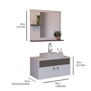 Seu banheiro merece um toque especial! O Meu Canto Modelo 5 traz um design suspenso que combina aconchego e um charme único. O balcão (40cm altura x 60cm largura x 32cm profundidade) organiza seus itens, enquanto a espelheira (50cm altura x 60cm largurax 8cm profundidade) completa o conjunto com beleza. Crie o seu refúgio particular com este modelo cheio de personalidade Acabamento da Cuba: Alto Brilho Acabamento da Porta: BP Acabamento da Prateleira: BP Acompanha Cuba: Sim Acompanha Manual de Instalação: Não Acompanha Parafusos Para Fixação Na Parede: Sim Acompanha Válvula: Não Ambiente Principal: Banheiro codigo_ean: 7900288251404 Comprimento da Prateleira: 60 cm Cor: Cinza/Branco Cor da Cuba: Branco Cor do Produto: Cinza/Branco Escala de Brilho: Acetinado Escala de Brilho da Porta: Semi-Fosco Escala de Brilho da Prateleira: Semi-Fosco Espessura da Prateleira: 1,5 cm Formato da Cuba: Quadrado Furação para Cuba e Torneira: Não Itens Inclusos: 1 Gabinete, 1 Espelheira e 1 Cuba Linha ou Coleção: Meu Canto Manual de Especificação Técnica: https://product-hub-prd.madeiramadeira.com.br/869483970/documents/1b03ad1e-9379-466b-935b-1ca47704f89f3250351666417592514952552.pdf Manual de Montagem e Instalação: https://product-hub-prd.madeiramadeira.com.br/869483970/documents/5457f5ce-c1c2-45fa-b5e6-a02ad0e75cda874095e1cd6764ad1758568655.pdf Marca: Eco Móveis Material da Cuba: Mármore Sintético Material da Porta: MDP Material da Prateleira: MDP Material do Puxador da Porta: Plástico Material do Tampo: MDP Material Principal: MDP Medida da Cuba (C x L x P): 9 x 32 x 30 Necessita Montagem: Não Origem do Produto: Nacional Peso: 16,3 kg Peso Máximo por Prateleira: 30 kg Possui Espelhos: Sim Possui Nichos: Não Possui Pés: Suspenso Possui Portas: Sim Possui Prateleiras: Sim Possui Recorte No Tampo Para Cuba: Não Possui Recorte No Tampo Para Misturador: Não Possui Sifão: Não Possui Tampo: Sim Produto Montado: Não Recomendações de Uso, Manutenção e Limpeza: Limpar com pano úmido ou com alcool Resistente à Chuva: Não Sapatas Niveladoras: Não Suporta Até (kg): 50 kg Tipo de Cuba: Apoio Tipo de Dobradiça/Corrediça da Porta: Metálica Tipo de Gabinete: Gabinete Suspenso Tipo de Móvel para o Banheiro: Gabinete de Banheiro Tipo de Porta: Abrir Tipo de Puxador da Porta: Externo Válvula indicada: padrão Marca: Não Informado