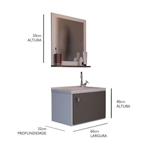 Crie um banheiro que é a sua cara com o Meu Canto Modelo 6! Esse conjunto suspenso tem um design charmoso e acolhedor. O balcão (40cm altura x 60cm largura x 32cm profundidade) é prático e a espelheira (50cm altura x 60cm largura x 8cm profundidade) adiciona funcionalidade com estilo. Ideal para quem busca um visual leve e um espaço mais pessoal. Dê um toque de aconchego ao seu banheiro! Acabamento da Cuba: Alto Brilho Acabamento da Porta: BP Acabamento da Prateleira: BP Acompanha Cuba: Sim Acompanha Manual de Instalação: Não Acompanha Parafusos Para Fixação Na Parede: Sim Acompanha Válvula: Não Ambiente Principal: Banheiro codigo_ean: 7900288255556 Comprimento da Prateleira: 40 cm Cor: Verde/Branco Cor da Cuba: Branco Cor do Produto: Verde/Branco Escala de Brilho: Acetinado Escala de Brilho da Porta: Semi-Fosco Escala de Brilho da Prateleira: Semi-Fosco Espessura da Prateleira: 1,5 cm Formato da Cuba: Quadrado Furação para Cuba e Torneira: Não Itens Inclusos: 1 Balcão, 1 Espelheira e 1 Cuba Linha ou Coleção: Básica Manual de Especificação Técnica: https://product-hub-prd.madeiramadeira.com.br/733244459/documents/2ce4375e-f418-4f68-9a67-370952445aec3250359666417592515527894.pdf Manual de Montagem e Instalação: https://product-hub-prd.madeiramadeira.com.br/733244459/documents/14f45bc4-0cda-4849-9a7a-150a1a8d2137325035766641759251546366.pdf Marca: Eco Móveis Material da Cuba: Mármore Sintético Material da Porta: MDP Material da Prateleira: MDP Material do Puxador da Porta: Plástico Material do Tampo: MDP Material Principal: MDP Medida da Cuba (C x L x P): 1,5 x 45 x 30 Necessita Montagem: Não Origem do Produto: Nacional Peso: 11 kg Peso Máximo por Prateleira: 30 kg Possui Espelhos: Sim Possui Nichos: Não Possui Pés: Suspenso Possui Portas: Sim Possui Prateleiras: Sim Possui Recorte No Tampo Para Cuba: Não Possui Recorte No Tampo Para Misturador: Não Possui Sifão: Não Possui Tampo: Sim Produto Montado: Sim Recomendações de Uso, Manutenção e Limpeza: Limpar com pano úmido ou com alcool Resistente à Chuva: Não Sapatas Niveladoras: Não Suporta Até (kg): 50 kg Tipo de Cuba: Embutir Tipo de Dobradiça/Corrediça da Porta: Metálica Tipo de Gabinete: Gabinete Suspenso Tipo de Móvel para o Banheiro: Gabinete de Banheiro Tipo de Porta: Abrir Tipo de Puxador da Porta: Externo Válvula indicada: padrão Marca: Não Informado
