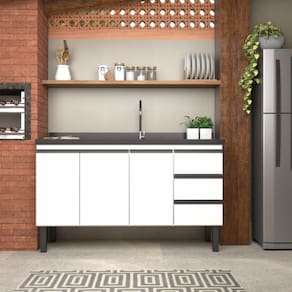 Gabinete em Aço Netuno Branco para Pias de 1,50 Metro com 3 Portas e 3 Gavetas - P101167 - COZIMAX