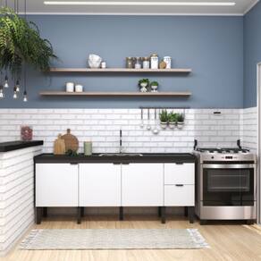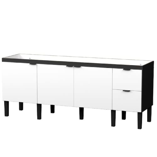 Gabinete em Madeira Colibri Branco com Detalhes Preto para Pias de 2,00 Metros com 3 Portas e 2 Gavetas - P101151 - COZIMAX