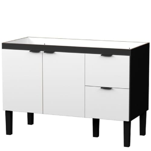 Características técnicas: - Produto: Gabinete - Modelo: Colibri - Marca: Cozimax - Porta condimentos: Não - Quantidade de portas: 2 - Quantidade de gavetas: 2 - Possui prateleira interna: Não - Possui divisória interna: Não - Estrutura: Madeira MDP - Puxadores: Aço Galvanizado - Pés: Polipropileno virgem e com regulagem de altura - Dobradiças: Sistema de molas (padrão) - Corrediças: Roldana com abertura parcial - Possui fundo: Não - Possui passagem para sifão: Sim - Possui divisor de talheres: Não