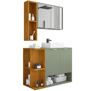Cor: Multicolorido | Tonalidade: Multicolorido | Produto: Conjunto de banheiro | Peso do produto: 33 | Altura: 60 | Largura: 70 | Material: MDP e mármore sintético. Cor: Pistache Naturalle