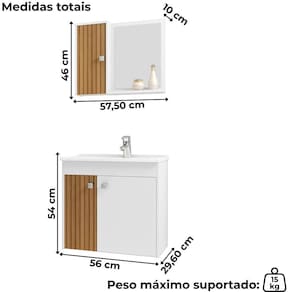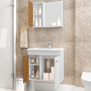 Cor: Multicolorido | Tonalidade: Multicolorido | Produto: Conjunto banheiro | Altura: 54 | Largura: 59 | Material: MDF | Peso do produto: 19 Cor: Branco Ripado