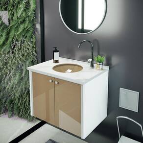 Com tampo em porcelanato polido, o gabinete reflete qualidade, sofisticação e resistência. O corpo em MDF Ultra maior resistência a umidade, enquanto o perfil de porcelanato lapidado e os puxadores metálicos com pintura eletrostática oferecem durabilidade e acabamento impecável. A cuba moldada em vidro e as portas de vidro lapidadas trazem elegância e segurança, e a gaveta interna mantém seus itens organizados.