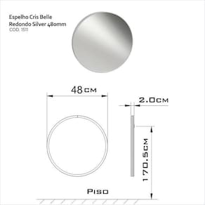 1x Espelho Redondo para Banheiro Perfil 48cm Silver Largura: 48 cm Altura: 48 cm Peso: 1,405 kg