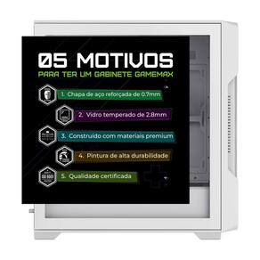 O escudo para o seu arsenal -----> 5 Motivos para ter um gabinete Gamemax 1. Chapa de aço reforçada de 0,7mm 2. Vidro temperado de 2,8mm 3. Construído com materiais premium 4. Pintura de alta durabilidade 5. Qualidade certificada