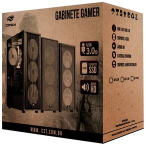O Gabinete Gamer C3Tech MT-G120BK é um gabinete torre Micro ATX projetado para oferecer espaço interno otimizado, refrigeração eficiente e estética moderna. Com lateral em vidro temperado que exibe os componentes e filtro anti-poeira para maior durabilidade, é ideal para configurações de alto desempenho. Possui organizador de cabos que facilita a montagem, compatibilidade com water cooler de 120 mm ou 240 mm e suporte para placas de vídeo de até 277 mm e coolers de CPU de até 158 mm. Seu painel frontal moderno conta com portas USB 3.0 e 2.0 e conectores de áudio HD, garantindo praticidade e conectividade avançada. Estrutura sólida em aço SPCC com pintura antiestática e anticorrosiva completa o conjunto, tornando o Gabinete Gamer C3Tech MT-G120BK uma solução robusta e funcional para qualquer setup gamer.