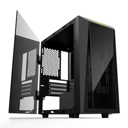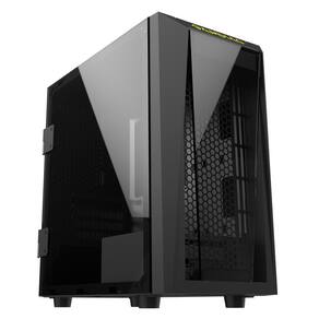 O gabinete apresenta um design elegante e moderno, com acabamento em preto, que proporciona um visual discreto e sofisticado para o seu setup gamer. Possui painel frontal liso e minimalista, adequado para os mais diversos estilos de configurações.