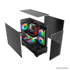 O Gabinete Gamer Liketec Mahal Dark é a escolha ideal para quem busca um visual moderno e sofisticado, aliado a uma estrutura funcional e eficiente. Com design elegante em preto fosco e painéis em vidro temperado nos lados frontal, lateral e superior, ele é perfeito para exibir com destaque cada componente do setup, valorizando principalmente configurações com iluminação RGB. Compatível com placas-mãe Micro ATX e Mini ITX, o Mahal Dark entrega um ótimo aproveitamento interno, com suporte para placas de vídeo de até 400 mm e coolers de CPU de até 155 mm. Projetado para alta performance térmica, comporta até 6 ventoinhas de 120 mm e water cooler de até 240 mm na bandeja da placa-mãe, garantindo um fluxo de ar eficiente mesmo em usos intensos. Construído com aço SPCC de 0,5 mm de espessura, conta com painel lateral direito em metal, filtro de poeira magnético na parte inferior e portas USB com conectividade moderna. O Mahal Dark é uma excelente opção para quem procura montar um PC com visual imponente e desempenho confiável. Especificações Técnicas: Marca: Liketec Modelo: Mahal DarkP/N: LC-MT-MAHAL-2093EAN: 7898742250691Cor: Dark Compatibilidade de Placas-mãe:Micro ATXMini ITX Material e Estrutura:Estrutura em aço SPCC espessura de 0,5 mm Pintura interna na cor pretaPainel frontal: Vidro temperadoPainel lateral esquerdo: Vidro temperadoPainel superior: Vidro temperadoPainel lateral direito: Metal Dimensões:Gabinete A x P x L : 433 x 425 x 188 mmFonte: Padrão ATX com instalação inferior Sistema de Resfriamento: Ventoinhas inclusas:Não acompanha fans Capacidade para até 6 fans de 120 mm:2x na bandeja da placa-mãe1x na traseira3x na parte inferior Compatibilidade com Water Cooler:Bandeja da placa-mãe: até 240 mm Compatibilidade Interna:Altura máxima do cooler de CPU: 155 mmComprimento máximo da placa de vídeo: 400 mmCom water cooler de 240 mm instalado: até 280 mmComprimento máximo da fonte PSU : 200 mmSlots de expansão PCI: 5 Armazenamento:1x baia para HD 3,51x baia para SSD 2,5 ou até 2x SSD 2,5 Conectividade no Painel Frontal I/O :1x USB 3.02x USB 1.11x Entrada de áudio HD Filtro de Poeira:Magnético, localizado na parte inferior de 12 messes diretamente com o fabricante Marca: Não Informado