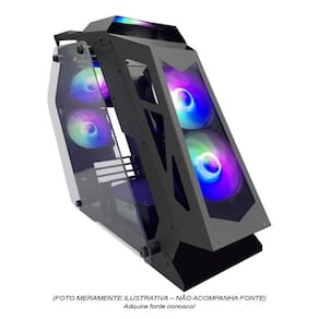 Principais características: Frontal com Fita LED RGB, Lateral Acrílica Cor: Preto Compatibilidade com placas mãe ATX, Micro ATX e Mini ATX. Suporte para fonte ATX 12v Quantidade de Coolers Suportados: 7 de 120mm: 2 x Frontal, 2 x Teto, 2 x Base, 1 x Fundo PCI com 4 slots disponíveis. Espaço para 2 disco 3.5 HDD e 2 discos 2.5 SSD. Painel frontal com 1 porta USB 3.0, 2 portas USB 2.0 e saídas de áudio. Lateral com vidro temperado, proporcionando uma visão elegante do interior. Tamanho máximo suportado para placa de vídeo PCI-E: 310mm. Compatibilidade com fans: 3x 120mm na parte frontal e 1x 120mm na parte traseira. Dimensões: 45x27x48cm. Peso bruto: 4.3kg