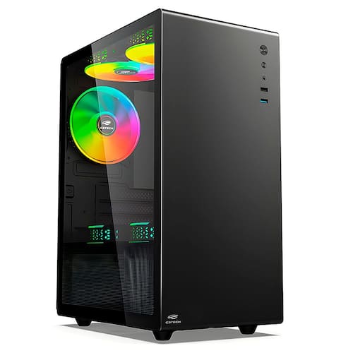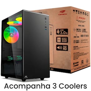Iluminação RGB: Coolers com iluminação RGB (dependendo do modelo) que podem ser sincronizados com a iluminação de outros componentes, criando um ambiente de jogo imersivo e personalizado. Benefícios para o Usuário Estética Premium: O painel de vidro temperado e a iluminação RGB proporcionam um visual moderno e atraente, ideal para exibir sua construção.Fluxo de Ar Ótimo: Os três coolers pré-instalados e o suporte para ventiladores adicionais garantem que todos os componentes se mantenham resfriados, mesmo durante longas sessões de jogos.Facilidade de Montagem: O espaço interno amplo e o gerenciamento de cabos simplificado tornam a montagem do sistema mais fácil e organizada.Conectividade Prática: As portas USB 3.0 e 2.0 frontais, junto com os conectores de áudio, oferecem acessibilidade rápida e fácil para periféricos e dispositivos de armazenamento. Aplicações Ideais Montagem de Sistemas Gamers: Perfeito para gamers que desejam montar um sistema com componentes de alto desempenho e iluminação RGB.Estações de Trabalho de Alta Performance: Ideal para profissionais que precisam de um sistema potente e bem refrigerado para tarefas exigentes como edição de vídeo e renderização 3D.Entusiastas de PC: Excelente escolha para aqueles que gostam de personalizar e exibir seu hardware.O Gabinete Gamer MT-G200BK da C3Tech é a escolha definitiva para quem busca um chassi que combine beleza, eficiência de resfriamento e praticidade. Com seu design elegante, resfriamento otimizado e conectividade avançada, ele é ideal para gamers e entusiastas de hardware que querem montar um sistema poderoso e estiloso. Eleve seu setup para um novo patamar com o MT-G200BK e aproveite o máximo desempenho e visual impressionante. Garanta já o seu e transforme sua experiência de montagem e jogo!