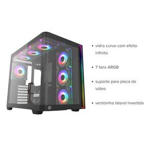 Com design moderno e agressivo, o Gabinete Gamer Primetek Infinity é ideal para quem busca performance, estilo e excelente fluxo de ar. Equipado com 7 fans ARGB com PWM, vidro curvo temperado e estrutura espaçosa, ele suporta watercooler, placas grandes e organização de cabos otimizada. Um verdadeiro upgrade para setups gamer exigentes!