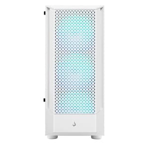 Seu visual moderno se destaca com linhas frontais onduladas, painel lateral em vidro temperado fumê e área frontal em mesh, permitindo excelente entrada de ar sem perder o apelo estético. A iluminação ARGB das três fans incluídas cria efeitos dinâmicos, que podem ser personalizados via controle integrado ou sincronizados com a sua placa-mãe.
