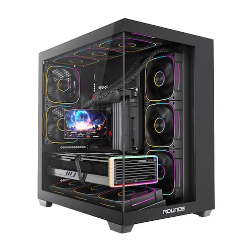 Eleve sua experiência de jogo com o Gabinete Gamer Round5 Asuka Preto, design moderno e arrojado, ideal para setups gamer de alto desempenho. Com ampla ventilação, espaço otimizado para componentes robustos, suporte para iluminação RGB e acabamento em preto elegante, o Asuka combina estilo e funcionalidade para destacar seu setup gamer.
