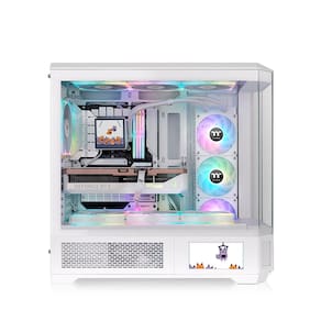 O View 600 TG Snow da Thermaltake é um gabinete Full Tower combina estrutura robusta com visual marcante e sofisticado com seu design na cor branca. Com quatro painéis de vidro temperado de 4 mm, oferece ampla visibilidade dos componentes e acabamento premium. Compatível com placas-mãe E-ATX, incluindo modelos com conectores ocultos da ASUS, MSI e GIGABYTE. Conta com espaço para até dez ventoinhas de 120/140 mm e radiadores de até 420 mm, entregando excelente fluxo de ar. Os slots PCI-E rotativos permitem instalação horizontal ou vertical da GPU (com riser opcional), e o suporte integrado evita o empenamento da placa. Filtros de poeira no topo, base e lateral protegem o sistema, enquanto a estrutura interna acomoda até três HDDs e três SSDs. O painel I/O no topo oferece conexões USB 3.0, USB-C e áudio HD.