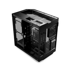 O gabinete Y60 Black da Hyte tem um design moderno, com vidro temperado em três painéis, oferecendo uma visão clara dos componentes internos e um visual atraente.