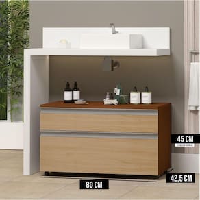 AS IMAGENS SÃO MERAMENTE ILUSTRATIVAS E PODEM SOFRER VARIAÇÕES DE COR E PEQUENOS DETALHES DE ACORDO COM O SEU MONITOR, ILUMINAÇÃO DO AMBIENTE E ATÉ MESMO A SUA PERCEPÇÃO VISUAL.Gabinete Inferior 80cm 2 Gavetas Safira - Freijà Amadeirado