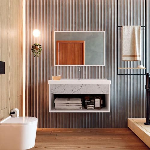 Com linhas retas e continuas, o Gabinete Beta, faz-se contemporâneo e atemporal sendo perfeito para o seu lavabo. Proporciona estilo, e por ser suspenso contibui para a limpeza diária do seu ambiente, conta com um amplo nicho para que seus itens de banho possam ficar sempre à mão.