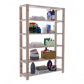 Estante arara com prateleiras e estrutura em madeira maciça de Pinus.