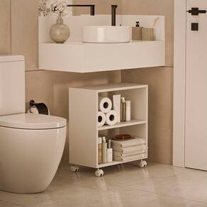 O Gabinete Organizador para Banheiro com Rodinhas 50cm Branco é a solução ideal para otimizar o espaço e a organização em seu banheiro!