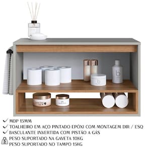 Transforme o visual do seu banheiro com este gabinete moderno e charmoso, ideal para quem busca praticidade e estilo. Com toalheiro em aço com pintura epóxi, 01 porta basculante e 01 nicho espaçoso para organizar todos os seus itens, ele une beleza e praticidade. Seu design com cores modernas e sofisticadas proporciona o toque de requinte que o ambiente merece. O grande diferencial é o porta-toalhas pode ser instalado no lado direito ou esquerdo, sem a necessidade de furar paredes. Não acompanha cuba. Este móvel chegará em sua casa separado em 01 Volume.