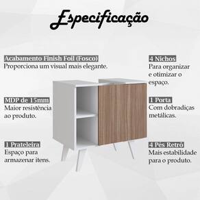Gabinete Para Banheiro 01 Porta e 4 Nichos B86, uma peça compacta e versátil, ideal para deixar seu ambiente moderno e cheio de personalidade. Estrutura produzida em MDP de 15mm, contando com acabamento Finish Foil (Fosco), proporcionando maior durabilidade e resistência a peça. Composto por 1 Porta com dobradiças metálicas, 4 Nichos com amplo espaço que suportam 5kg cada, 1 Prateleira ideal para armazenar itens e 4 pés Retrô em plástico. Suportando até 10 kg distribuídos. Perfeito para adicionar elegância e estilo ao seu ambiente. Este móvel chegará na sua casa em 1 volume.