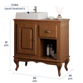 O Gabinete de Banheiro 80cm é a solução completa para ter um banheiro organizado. Com uma portas, prateleira e nicho, ele oferece espaço amplo para guardar seus itens essenciais, mantendo tudo no lugar certo. Produzido em Madeira Maciça para tons amadeirado em verniz e MDF nos tons coloridos com acabamento laca, esse gabinete é sinônimo de qualidade e durabilidade. Além disso, possuí pés no estilo Luis XV, dando um toque clássico ao móvel. A cuba em mármore sintético traz requinte e sofisticação ao conjunto. Além de proporcionar um visual luxuoso, a superfície de fácil limpeza torna a manutenção uma tarefa simples e rápida.