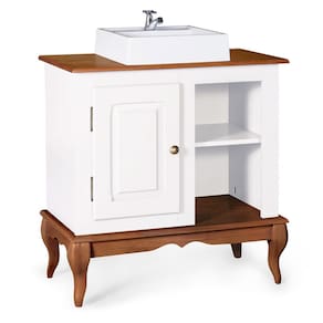 O Gabinete de Banheiro oferece duas portas, uma prateleira e dois nichos, proporcionando espaço de sobra, produzido com madeira maciça e MDF, ele combina durabilidade e qualidade em um único móvel, enquanto os pés no estilo Luis XV conferem elegância e sofisticação. Além disso, a cuba em mármore sintético é o complemento ideal para o gabinete, trazendo requinte e durabilidade para o seu banheiro. Com sua superfície de fácil limpeza e design sofisticado, a cuba proporciona uma experiência luxuosa em cada detalhe. Seu banheiro se transformará em um ambiente funcional, organizado e cheio de estilo.