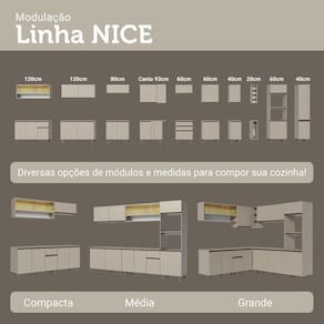 Produzido com materiais de qualidade, possui dobradiças metálicas nas portas e puxadores em perfil de alumínio, garantindo resistência. As gavetas possuem corrediças que permitem abertura total e o acabamento é de alta resistência, garantindo durabilidade.