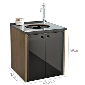A cuba moldada em vidro e as portas de vidro lapidadas com películas protetoras completam o design com um toque de elegância, modernidade e segurança. Acabamento da Cuba: Alto Brilho Acabamento da Porta: Vidro Acabamento da Prateleira: BP Acompanha Cuba: Sim Acompanha Manual de Instalação: Sim Acompanha Parafusos Para Fixação Na Parede: Sim Acompanha Válvula: Sim Ambiente Principal: Banheiro codigo_ean: 7900288299376 Complexidade da Montagem: Baixa: pode ser montado por uma pessoa sozinha Comprimento da Prateleira: 36 cm Cor: Preto / Madeirado Cor da Cuba: Preto Cor da Porta: Marrom Cor do Produto: Preto / Madeirado Cor Interna: Madeirado Escala de Brilho: Brilhante Escala de Brilho da Porta: Brilhante Escala de Brilho da Prateleira: Fosco Espessura da Prateleira: 1,5 cm Formato da Cuba: Redondo Furação para Cuba e Torneira: Sim Itens Inclusos: 1 Gabinete, Kit Ferragens e Manual de Montagem Linha ou Coleção: Fenix Manual de Montagem e Instalação: https://product-hub-prd.madeiramadeira.com.br/722837402/documents/42321e2b-9491-4958-b278-83d7a61f82593323420582917629470026038.pdf Marca: Cris Metal Material da Cuba: Vidro Material da Porta: Vidro Material da Prateleira: MDF Material do Puxador da Porta: Metal Material do Tampo: Cerâmica Material Principal: MDF Medida da Cuba (C x L x P): 35x35x9 Medida do Recorte Para Cuba: 27 Necessita Montagem: Sim Origem do Produto: Nacional Peso: 15,315 kg Peso Máximo por Prateleira: 10 kg Possui Espelhos: Não Possui Nichos: Não Possui Pés: Não Possui Portas: Sim Possui Prateleiras: Sim Possui Recorte No Tampo Para Cuba: Sim Possui Recorte No Tampo Para Misturador: Não Possui Sifão: Não Possui Tampo: Sim Produto Montado: Sim Recomendações de Uso, Manutenção e Limpeza: Pano umido Sistema de Montagem: bucha e parafusos Suporta Até (kg): 30 kg Tamanho do Gabinete: Pequeno: Abaixo de 60cm de largura Tipo de Cuba: Embutir Tipo de Dobradiça/Corrediça da Porta: Alumínio Tipo de Gabinete: Gabinete Suspenso Tipo de Móvel para Banheiro: Gabinete Tipo de Móvel para o Banheiro: Gabinete de Banheiro Tipo de Porta: Abrir Tipo de Puxador da Porta: Externo Válvula indicada: Exclusiva