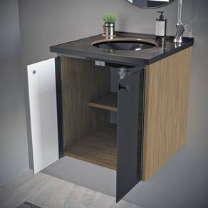 Gabinete com tampo em porcelanato polido, que reflete qualidade, sofisticação e inovação.