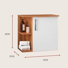 O balcão para banheiro é um produto fundamental no cômodo e possui as dimensões de 50cm de largura, 48cm de altura e 35cm de profundidade. Um móvel que agrega harmonia ao ambiente por seu design moderno, prateleiras laterais para decoração e espaço de armazenamento interno.