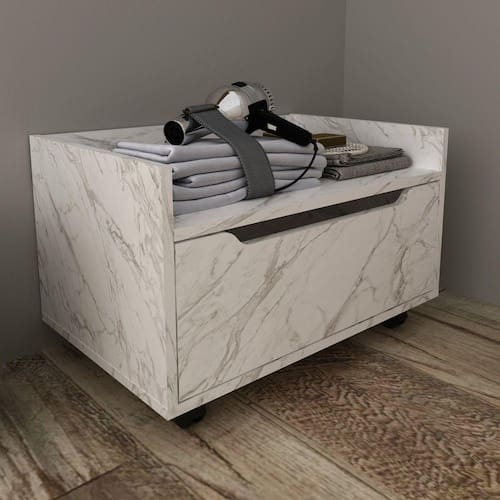 Possui 1 gavetas com frente usinada, tampo e rodízio que permite movimento. Estrutura em MDP e acabamento em pintura UV. Imagem meramente ilustrativa. A decoração do ambiente não acompanha o produto. Produto, acompanha nota. O produto será entregue desmontado. Acabamento da Gaveta: Pintura UV Acompanha Cuba: Não Acompanha Parafusos Para Fixação Na Parede: Sim Altura dos Pés: 5.5 Ambiente Principal: Banheiro Complexidade da Montagem: Média: pode ser montado por mais de uma pessoa e/ou necessite de maior conhecimento para montagem Cor: Mármore Branco Cor do Produto: Mármore Branco Cor Flex: Branco Cor Interna: Mármore Branco Escala de Brilho: Semi-Brilho Escala de Brilho da Gaveta: Semi-Brilho Gaveta com Chave: Não Informações Complementares: 15kg no tampo e 3kg gaveta. Itens Inclusos: 1 Gabinete, Manual de Montagem e Kit Ferragens Linha ou Coleção: BN Manual de Montagem e Instalação: https://product-hub-prd.madeiramadeira.com.br/863247/documents/2a8e43be-ccee-4b96-bc12-213c57de24571443944bn3647.pdf Material da Gaveta: MDP Material do Tampo: MDP Material dos Pés: PVC Material Principal: MDP Necessita Montagem: Sim Origem do Produto: Nacional Peso: 10.6 Peso Máximo por Gaveta: 3 Possui Nichos: Não Possui Pés: 04 Possui Portas: Não Possui Prateleiras: Não Possui Recorte No Tampo Para Cuba: Não Possui Recorte No Tampo Para Misturador: Não Possui Rodízio: Sim Possui Sifão: Não Possui Tampo: Sim Recomendações de Uso, Manutenção e Limpeza: Para uma limpeza mais efetiva, utilizar apenas pano macio umedecido e sabão neutro. Não utilizar produtos abrasivos. Rodízio com Trava: Não Sapatas Niveladoras: Não Sistema de Montagem: Sim. Aconselhamos que a montagem seja feita por um profissional. Forre o chão com o próprio papelão de nossas embalagens para evitar danos e arranhões e monte o móvel deitado de costas para cima. Após montado não expor o móvel a fonte de calor ou umidade. Suporta Até (kg): 15 Suporte para Toalheiro: Não Tamanho Indicado Para Cuba: Não comporta cuba. Tipo de Corrediça da Gaveta: Metálica Simples Tipo de Gabinete: Gabinete com Rodízio Tipo de Móvel para o Banheiro: Gabinete de Banheiro Tipo de Puxador da Gaveta: Não Possui - Abertura por Fecho Toque Ean: 7909903379387