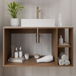 A renovação do seu banheiro tem que ter gabinetes da MGM Móveis. Os gabinetes da MGM Móveis trazem elegância e sofisticação ao seu banheiro! Veja por exemplo o nosso Gabinete Noruega, fabricado 100% em MDF, possui design moderno, portas ripadas com dobradiças slow motion de 3,5cm que garantem fechamento suave e sem barulho. Puxadores na em ABS na cor Gold, Tampo em vidro temerado pintado com espessura de 0,4cm, nichos laterais e amplo espaço interno para armazenar objetos diversos e disponivel e 3 cores modernas que vai dar um toque especial ao banheiro do seu lar! Acabamento da Cuba: Polido Acabamento da Porta: Pintura UV Acabamento da Prateleira: Pintura UV Acompanha Cuba: Sim Acompanha Manual de Instalação: Sim Acompanha Parafusos Para Fixação Na Parede: Sim Acompanha Válvula: Não Ambiente Principal: Banheiro codigo_ean: 7900288231246 Complexidade da Montagem: Baixa: pode ser montado por uma pessoa sozinha Comprimento da Prateleira: 42,4 cm Cor: Freijó Cor da Cuba: Branco Cor da Porta: Marrom Cor do Produto: Freijó Cor Flex: Não Cor Interna: Freijó Escala de Brilho: Fosco Escala de Brilho da Porta: Fosco Escala de Brilho da Prateleira: Fosco Espessura da Prateleira: 1,5 cm Formato da Cuba: Retangular Furação para Cuba e Torneira: Sim Informações Complementares: Porta com acabamento Ripado Itens Inclusos: 1 Gabinete, 1 Cuba, Kit Ferragens e Manual de Montagem Linha ou Coleção: Noruega Manual de Especificação Técnica: https://product-hub-prd.madeiramadeira.com.br/129779959/documents/43481598-9868-4a09-8012-710d281799f53176556528517568366720235.pdf Manual de Montagem e Instalação: https://product-hub-prd.madeiramadeira.com.br/129779959/documents/43e79ce5-a09c-47e6-b1e4-8d4d391085e8317655452851756836668504.pdf Marca: MGM Móveis Material da Cuba: Mármore Sintético Material da Porta: MDF Material da Prateleira: MDF Material do Puxador da Porta: ABS Material do Tampo: Vidro/MDF Material Principal: MDF Medida da Cuba (C x L x P): 9,8 x 40 x 37 Medida do Recorte Para Misturador: N/A Montagem Flex: Não Necessita Montagem: Sim Origem do Produto: Nacional Peso: 27,6 kg Peso Máximo por Prateleira: 5 kg Possui Espelhos: Não Possui Nichos: 02 Possui Pés: Não Possui Portas: Sim Possui Prateleiras: Sim Possui Recorte No Tampo Para Cuba: Não Possui Recorte No Tampo Para Misturador: Sim Possui Sifão: Não Possui Tampo: Sim Possui Tampo de Vidro: Sim Produto Montado: Não Recomendações de Uso, Manutenção e Limpeza: Utilizar pano umidecido Resistente à Chuva: Não Sistema de Montagem: Parafusos e Cavilhas Suporta Até (kg): 25 kg Tamanho do Gabinete: Médio: de 60cm a 80cm de largura Tamanho do Produto: 58,5 x 80,3 x 45,1 Tipo de Cuba: Apoio/Sobrepor Tipo de Dobradiça/Corrediça da Porta: Metálica Tipo de Gabinete: Gabinete Suspenso Tipo de Móvel para Banheiro: Gabinete com Cuba Tipo de Móvel para o Banheiro: Gabinete de Banheiro Tipo de Porta: Bater Tipo de Puxador da Porta: Externo Tipo do produto: Gabinete de Banheiro Válvula indicada: N/A