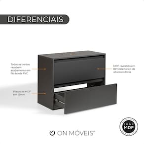 Sendo suas dimensões: 80cm de largura, 63cm de altura e 36cm de profundidade, o produto conta com uma porta basculante espaçosa, dobradiças com amortecimento e uma gaveta ampla com corrediças telescópicas para armazenar produtos de limpeza e higiene pessoal, mantendo-os sempre acessíveis.