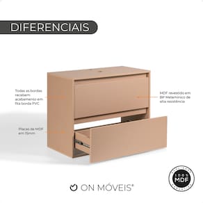 Sendo suas dimensões: 80cm de largura, 63cm de altura e 36cm de profundidade, o produto conta com uma porta basculante espaçosa, dobradiças com amortecimento e uma gaveta ampla com corrediças telescópicas para armazenar produtos de limpeza e higiene pessoal, mantendo-os sempre acessíveis.