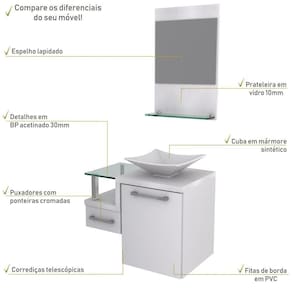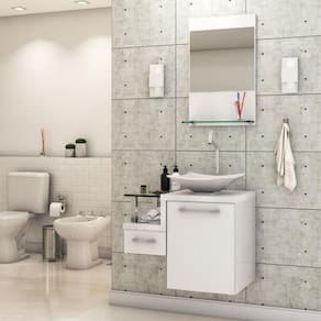 Gabinete Para Banheiro C/cuba L34 E Espelheira Legno 631 Branco Chess C/branco Chess Sobre o ProdutoConjunto Balcão C/Cuba L34 e Espelheira Legno 631 Perffect AcetinadoDescrição do Produto:O Conjunto Balcão C/Cuba e Espelheira Legno 631 é um produto compacto, de design contemporâneo e minimalista, projetado para se encaixar no seu espaço, composto por um gabinete com gaveta inferior e prateleira de vidro 10mm. A espelheira possui espelho lapidado e 01 prateleira de vidro 10mm, sendo perfeita para organizar suas coisas e fazer parte da decoração do seu linha Legno combina a leveza do branco e detalhes em vidro com tons amadeirados, conferindo uma personalidade contemporânea aos móveis de design minimalista e traços retos. Produtos que aliam funcionalidade e praticidade ao seu dia a dia são características marcantes desta coleção!Itens Inclusos:1 Conjunto Balcão C/Cuba e EspelheiraDimensões dos Produtos:O Gabinete Legno 630 GTLG630 possui 01 porta e 01 gaveta lateral, além do tampo de apoio em vidro 10mm.: x 65 x 43 cmA Espelheira Legno 610 EPLG610SE possui espelho lapidado e 01 prateleira de vidro 10mm, sendo perfeita para organizar suas coisas e fazer parte da decoração do seu banheiro.: x 37,5 x 11,5 cmCuba 38,5 x 33 x 11,5 cmInformações Logísticas (Comp. X Prof. X Alt.) 47 x 47 x 55 cm - Peso: 28,91 KgPeso Total: 28,91 KgObservações:Não acompanha acessórios decorativos. Imagens meramente ilustrativas.Informações Técnicas / Características:- Cor do Produto: Perffect Acetinado- Cor do Predominante: Branco- Marca: Compace- Modelo: KTLG631- Linha: Legno- Material: Mdp - Acabamento: Perffect Acetinado- Escala de Brilho: Fosco- Fita de Borda: Pvc- Possui Portas: 1- Tipo de Porta: Bater- Tipo da Dobradiça: Metálica- Possui Gavetas: 1- Tipo da Corrediça: Telescópica- Possui Chave: Não- Peso Máximo por Gaveta: 3 kg- Material do Puxador: Abs- Possui Prateleiras: 2 - Possui Pés: Não, suspenso - Possui Espelho: Sim- Possui Vidro: Sim- Acompanha Cuba / Lavatório: Sim, de Mármore Sintético- Furação para Cuba / Lavatório: Não- Tipo da Cuba: Apoio- Cor da Cuba: Branca- Suporta Até (kg): 20 kg - Peso Lí.: 27,45Kg- Recomendações de Uso, Manutenção e Limpeza: Para a limpeza, utilize flanela seca ou pano macio levemente umedecido em água. Utilize um pano seco em seguida. Evite com produtos químicos (solventes, thinner, acetona, etc) e não utilize nenhum tipo de esponja de aço.- Necessita de Montagem: Sim / Acompanha Manual de Montagem- Complexidade da Montagem: Média: pode ser montado por mais de uma pessoa e/ou necessite de maior conhecimento para montagem.- Garantia: 6 meses Material: Mdp | Acabamento: Perffect Acetinado | Escala de Brilho: Fosco | Fita de Borda: Pvc | Possui Portas: 1 | Tipo de Porta: Bater | Tipo da Dobradiça: Metálica | Limite de unidades por venda: É possível comprar até 1 unidade por venda. | Comprimento: 65 | Largura: 43 | Quantidade máxima de pedido: 1 | Altura: 50 | Profundidade: 43 | Preço tabelado: | Cor: Multicolorido | Certificação de teste externa: Não Aplicável | Baterias são necessárias?: false | Palavras-chave de Pesquisa: Não aplicável | Fonte de energia: Não aplicável | Fabricante: Compace | Exige montagem: | Is Fragile: | Dimensões do item P x L x A: | Principais Características do Produto 1: | Peso do item: | da peça: | Componentes incluídos: | Principais Características do Produto 2: | Principais Características do Produto 0: | de caixas: | do modelo: | Quantidade de itens: Cor: Branco Chess C/Branco Chess