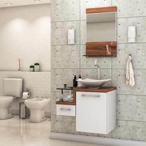 Sobre o ProdutoConjunto Balcão C/Cuba L34 e Espelheira Legno 631 Perffect AcetinadoDescrição do Produto:O Conjunto Balcão C/Cuba e Espelheira Legno 631 é um produto compacto, de design contemporâneo e minimalista, projetado para se encaixar no seu espaço, composto por um gabinete com gaveta inferior e prateleira de vidro 10mm. A espelheira possui espelho lapidado e 01 prateleira de vidro 10mm, sendo perfeita para organizar suas coisas e fazer parte da decoração do seu linha Legno combina a leveza do branco e detalhes em vidro com tons amadeirados, conferindo uma personalidade contemporânea aos móveis de design minimalista e traços retos. Produtos que aliam funcionalidade e praticidade ao seu dia a dia são características marcantes desta coleção!Itens Inclusos:1 Conjunto Balcão C/Cuba e EspelheiraDimensões dos Produtos:O Gabinete Legno 630 GTLG630 possui 01 porta e 01 gaveta lateral, além do tampo de apoio em vidro 10mm.: x 65 x 43 cmA Espelheira Legno 610 EPLG610SE possui espelho lapidado e 01 prateleira de vidro 10mm, sendo perfeita para organizar suas coisas e fazer parte da decoração do seu banheiro.: x 37,5 x 11,5 cmCuba 38,5 x 33 x 11,5 cmInformações Logísticas (Comp. X Prof. X Alt.) 47 x 47 x 55 cm - Peso: 28,91 KgPeso Total: 28,91 KgObservações:Não acompanha acessórios decorativos. Imagens meramente ilustrativas.Informações Técnicas / Características:- Cor do Produto: Perffect Acetinado- Cor do Predominante: Branco- Marca: Compace- Modelo: KTLG631- Linha: Legno- Material: Mdp - Acabamento: Perffect Acetinado- Escala de Brilho: Fosco- Fita de Borda: Pvc- Possui Portas: 1- Tipo de Porta: Bater- Tipo da Dobradiça: Metálica- Possui Gavetas: 1- Tipo da Corrediça: Telescópica- Possui Chave: Não- Peso Máximo por Gaveta: 3 kg- Material do Puxador: Abs- Possui Prateleiras: 2 - Possui Pés: Não, suspenso - Possui Espelho: Sim- Possui Vidro: Sim- Acompanha Cuba / Lavatório: Sim, de Mármore Sintético- Furação para Cuba / Lavatório: Não- Tipo da Cuba: Apoio- Cor da Cuba: Branca- Suporta Até (kg): 20 kg - Peso Lí.: 27,45Kg- Recomendações de Uso, Manutenção e Limpeza: Para a limpeza, utilize flanela seca ou pano macio levemente umedecido em água. Utilize um pano seco em seguida. Evite com produtos químicos (solventes, thinner, acetona, etc) e não utilize nenhum tipo de esponja de aço.- Necessita de Montagem: Sim / Acompanha Manual de Montagem- Complexidade da Montagem: Média: pode ser montado por mais de uma pessoa e/ou necessite de maior conhecimento para montagem.- Garantia: 6 meses Material: Mdp | Acabamento: Perffect Acetinado | Escala de Brilho: Fosco | Fita de Borda: Pvc | Possui Portas: 1 | Tipo de Porta: Bater | Tipo da Dobradiça: Metálica | Limite de unidades por venda: É possível comprar até 1 unidade por venda. | Comprimento: 65 | Largura: 43 | Quantidade máxima de pedido: 1 | Altura: 50 | Profundidade: 43 | Preço tabelado: | Cor: Multicolorido | Certificação de teste externa: Não Aplicável | Baterias são necessárias?: false | Palavras-chave de Pesquisa: Não aplicável | Fonte de energia: Não aplicável | Fabricante: Compace | Exige montagem: | Is Fragile: | Dimensões do item P x L x A: | Principais Características do Produto 1: | Peso do item: | da peça: | Componentes incluídos: | Principais Características do Produto 2: | Principais Características do Produto 0: | de caixas: | do modelo: | Quantidade de itens: Cor: Branco Chess C/Nogal