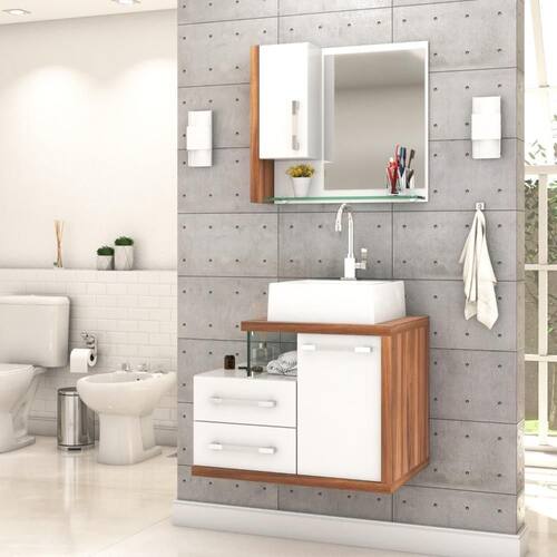 Sobre o ProdutoConjunto Balcão C/Cuba Q355 e Espelheira Legno 650 Perffect AcetinadoDescrição do Produto:O Conjunto (Balcão + Cuba + Espelheira) Legno KTLG650 é um produto compacto, de design contemporâneo e minimalista, projetado para se encaixar no seu espaço, composto por um gabinete com cuba de apoio, 02 gavetas laterais e detalhe em vidro 10mm. A espelheira possui 01 porta, espelho lapidado e 01 prateleira de vidro 10mm, sendo perfeita para organizar suas coisas e fazer parte da decoração do seu linha Legno combina a leveza do branco e detalhes em vidro com tons amadeirados, conferindo uma personalidade contemporânea aos móveis de design minimalista e traços retos. Produtos que aliam funcionalidade e praticidade ao seu dia a dia são características marcantes desta coleção!Itens Inclusos:1 Conjunto Balcão C/Cuba e EspelheiraDimensões dos Produtos:Gabinete: 65 x 45 x 50 cmEspelheira: 59 x 15 x 54 cmCuba 35 x 35 x 11,5 cmInformações Logísticas (Comp. X Prof. X Alt.) 70 x 50 x 56 cm - Peso: 28,04 63 x 19 x 59 cm - Peso: 9,065 KgPeso Total: 37,10 KgObservações:Não acompanha acessórios decorativos. Imagens meramente ilustrativas.Informações Técnicas / Características:- Cor do Produto: Perffect Acetinado - Marca: Compace- Modelo: KTLG650- Linha: Legno- Material: Mdp - Acabamento: Perffect Acetinado- Escala de Brilho: Fosco- Fita de Borda: Pvc- Possui Portas: 2- Tipo de Porta: Bater- Tipo da Dobradiça: Metálica- Possui Gavetas: 2- Tipo da Corrediça: Telescópica- Possui Chave: Não- Peso Máximo por Gaveta: 3 kg- Material do Puxador: Abs- Possui Prateleiras: 1- Peso Máximo por Prateleira: 1 kg- Possui Pés: Não, suspenso - Possui Espelho: Sim- Possui Vidro: Sim- Acompanha Cuba / Lavatório: Sim, de Mármore Sintético- Furação para Cuba / Lavatório: Não- Tipo da Cuba: Apoio- Cor da Cuba: Branca- Suporta Até (kg): 20 kg - Peso Lí.: 34,11Kg- Recomendações de Uso, Manutenção e Limpeza: Para a limpeza, utilize flanela seca ou pano macio levemente umedecido em água. Utilize um pano seco em seguida. Evite com produtos químicos (solventes, thinner, acetona, etc) e não utilize nenhum tipo de esponja de aço.- Necessita de Montagem: Sim / Acompanha Manual de Montagem- Complexidade da Montagem: Média: pode ser montado por mais de uma pessoa e/ou necessite de maior conhecimento para montagem.- Garantia: 6 meses Material: Mdp | Acabamento: Perffect Acetinado | Escala de Brilho: Fosco | Fita de Borda: Pvc | Possui Portas: 1 | Tipo de Porta: Bater | Tipo da Dobradiça: Metálica | Comprimento: 65 | Limite de unidades por venda: É possível comprar até 1 unidade por venda. | Quantidade máxima de pedido: 1 | Largura: 45 | Altura: 53 | Profundidade: 45 | Preço tabelado: 628 | Cor: Multicolorido | Certificação de teste externa: Não Aplicável | Baterias são necessárias?: false | Palavras-chave de Pesquisa: Não aplicável | Fonte de energia: Não aplicável | Fabricante: Compace | da peça: | Componentes incluídos: | Exige montagem: | Principais Características do Produto 2: | Peso do item: | Dimensões do item P x L x A: | Principais Características do Produto 1: | Principais Características do Produto 0: | Is Fragile: | Quantidade de itens: | do modelo: | de caixas: Cor: Branco Chess C/Nogal