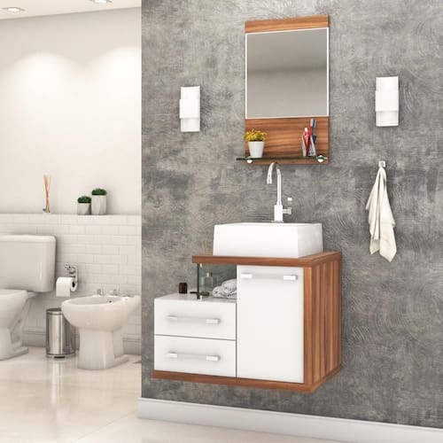 Sobre o ProdutoConjunto Balcão C/Cuba Q355 e Espelheira Legno 651 Perffect AcetinadoDescrição do Produto:O Conjunto (Balcão + Cuba + Espelheira) Legno KTLG651 é um produto compacto, de design contemporâneo e minimalista, projetado para se encaixar no seu espaço, composto por um gabinete com cuba de apoio, 02 gavetas laterais e detalhe em vidro 10mm. A espelheira possui espelho lapidado e 01 prateleira de vidro 10mm, sendo perfeita para organizar suas coisas e fazer parte da decoração do seu linha Legno combina a leveza do branco e detalhes em vidro com tons amadeirados, conferindo uma personalidade contemporânea aos móveis de design minimalista e traços retos. Produtos que aliam funcionalidade e praticidade ao seu dia a dia são características marcantes desta coleção!Itens Inclusos:1 Conjunto Balcão C/Cuba e EspelheiraDimensões dos Produtos:Gabinete: 65 x 45 x 50 cmEspelheira: 37,5 x 11,5 x 67,5 cmCuba 35 x 35 x 11,5 cmInformações Logísticas (Comp. X Prof. X Alt.) 70 x 50 x 56 cm - Peso: 32,42 KgPeso Total: 32,42 KgObservações:Não acompanha acessórios decorativos. Imagens meramente ilustrativas.Informações Técnicas / Características:- Cor do Produto: Perffect Acetinado - Marca: Compace- Modelo: KTLG651- Linha: Legno- Material: Mdp - Acabamento: Perffect Acetinado- Escala de Brilho: Fosco- Fita de Borda: Pvc- Possui Portas: 1- Tipo de Porta: Bater- Tipo da Dobradiça: Metálica- Possui Gavetas: 2- Tipo da Corrediça: Telescópica- Possui Chave: Não- Peso Máximo por Gaveta: 3 kg- Material do Puxador: Abs- Possui Prateleiras: 1 - Possui Pés: Não, suspenso - Possui Espelho: Sim- Possui Vidro: Sim- Acompanha Cuba / Lavatório: Sim, de Mármore Sintético- Furação para Cuba / Lavatório: Não- Tipo da Cuba: Apoio- Cor da Cuba: Branca- Suporta Até (kg): 20 kg - Peso Lí.: 30,37Kg- Recomendações de Uso, Manutenção e Limpeza: Para a limpeza, utilize flanela seca ou pano macio levemente umedecido em água. Utilize um pano seco em seguida. Evite com produtos químicos (solventes, thinner, acetona, etc) e não utilize nenhum tipo de esponja de aço.- Necessita de Montagem: Sim / Acompanha Manual de Montagem- Complexidade da Montagem: Média: pode ser montado por mais de uma pessoa e/ou necessite de maior conhecimento para montagem.- Garantia: 6 meses Material: Mdp | Acabamento: Perffect Acetinado | Escala de Brilho: Fosco | Fita de Borda: Pvc | Possui Portas: 1 | Tipo de Porta: Bater | Tipo da Dobradiça: Metálica | Tipo de Produto: Bancada para Banheiro | Limite de unidades por venda: É possível comprar até 1 unidade por venda. | Fabricante: Compace | Quantidade máxima de pedido: 1 | Comprimento: 65 | Largura: 45 | Altura: 53 | Profundidade: 45 | Preço tabelado: | Cor: Multicolorido | Certificação de teste externa: Não Aplicável | Baterias são necessárias?: false | Palavras-chave de Pesquisa: Não aplicável | Fonte de energia: Não aplicável | Peso do item: | Componentes incluídos: | Exige montagem: | da peça: | Principais Características do Produto 2: | Dimensões do item P x L x A: | Principais Características do Produto 1: | Is Fragile: | Principais Características do Produto 0: | de caixas: | do modelo: | Quantidade de itens: Cor: Branco Chess C/Nogal